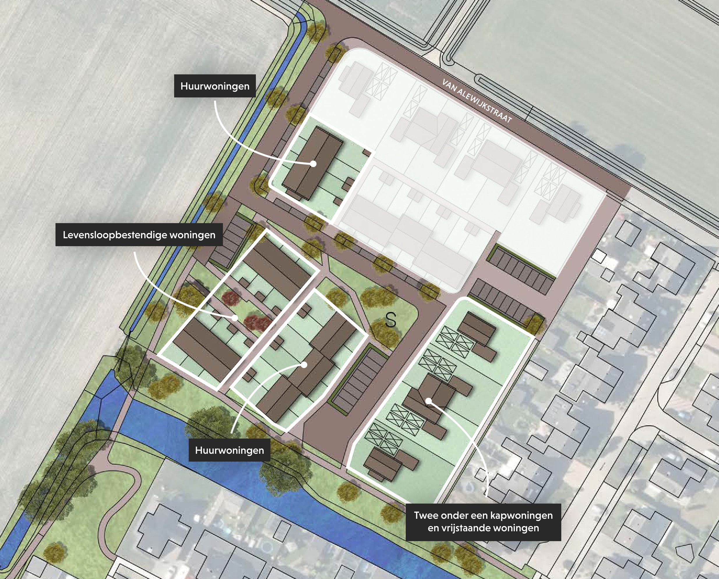 Het ‘Erf van Alewijk’ bestaat uit 20 woningen waarvan 10 koopwoningen. De koopwoningen zijn gesitueerd aan een hofje of aan de rand van het woongebied. Aan het hofje komen levensloopbestendige woningen die samen een herkenbaar en bijzonder accent vormen binnen de nieuwe wijk. Aan de rand van het plangebied bevinden zich twee-onder-een-kapwoningen en vrijstaande woningen, met een prettige overgang naar de omgeving en volop ruimte en privacy.